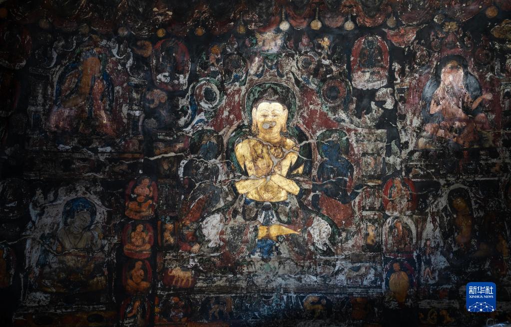 5月26日拍攝的皮央石窟壁畫局部。新華社記者 費(fèi)茂華 攝