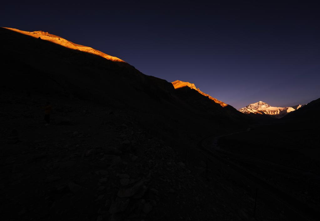 巍峨的珠穆朗瑪峰屹立于青藏高原,珠峰地區(qū)氣候復(fù)雜,景色瞬息萬變?!皣乐?從雪山奔向大?!眻?bào)道組在落日時(shí)分來到珠穆朗瑪峰腳下,記錄下世界之巔的“日照金山”壯美場景。