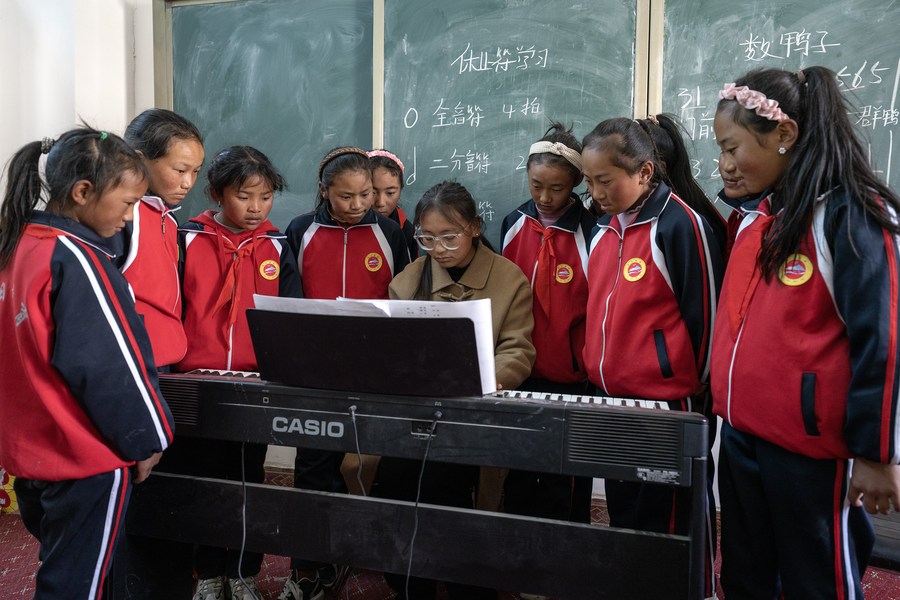 正在學習鋼琴的旦增吉宗對于上學有更深刻的認識,她的爺爺奶奶沒有上過學,一輩子從事農(nóng)業(yè)生產(chǎn);父親上過初中,母親是小學畢業(yè),他們經(jīng)過培訓成了村里的鄉(xiāng)村醫(yī)生?!鞍职謰寢屪屛液煤脤W習,爭取考上大學,成為家里的第一個大學生?!钡┰黾谡f。