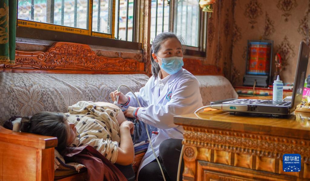 6月12日,陳冰(右)在為扎西央宗進(jìn)行產(chǎn)檢。新華社記者 費(fèi)茂華 攝