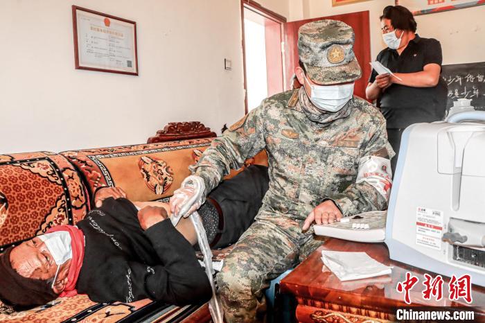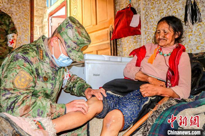格桑措姆因膝蓋疼痛,已三四年不能行走。醫(yī)療隊軍醫(yī)抵達后,立即對老人進行了初步篩查和救治。同時,為了進一步確診病因,還與她約定次日上門接她到醫(yī)院進行X線檢查,并將把她安全送回家。