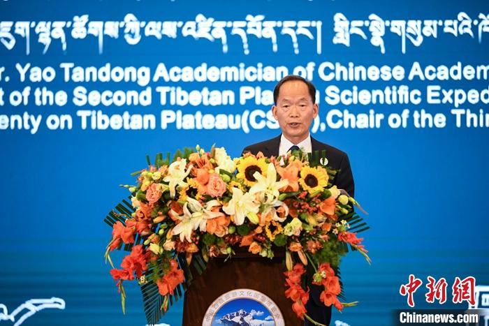 6月17日,中國科學(xué)院院士、中國科學(xué)院青藏高原研究所研究員、博士生導(dǎo)師姚檀棟在第五屆中國西藏旅游文化國際博覽會(huì)主旨論壇上對(duì)第二次青藏科考的最新成果進(jìn)行了演講分享。他表示,考察實(shí)證漢藏同源,并將青藏高原人類活動(dòng)歷史推至20萬年前。 中新社記者 貢嘎來松 攝