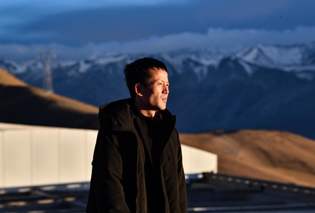 在阿里地區(qū)獅泉河鎮(zhèn)南部甲馬兒燈山海拔5100米的山頂上,我們看見了十年如一日守望璀璨星空的人——尤顯龍。他十七年前開始就為阿里天文臺(tái)的選址而工作,如今負(fù)責(zé)天文臺(tái)數(shù)據(jù)觀測(cè)和運(yùn)維設(shè)備。尤顯龍也是為阿里天文臺(tái)工作時(shí)間最長(zhǎng)的一位工程師。