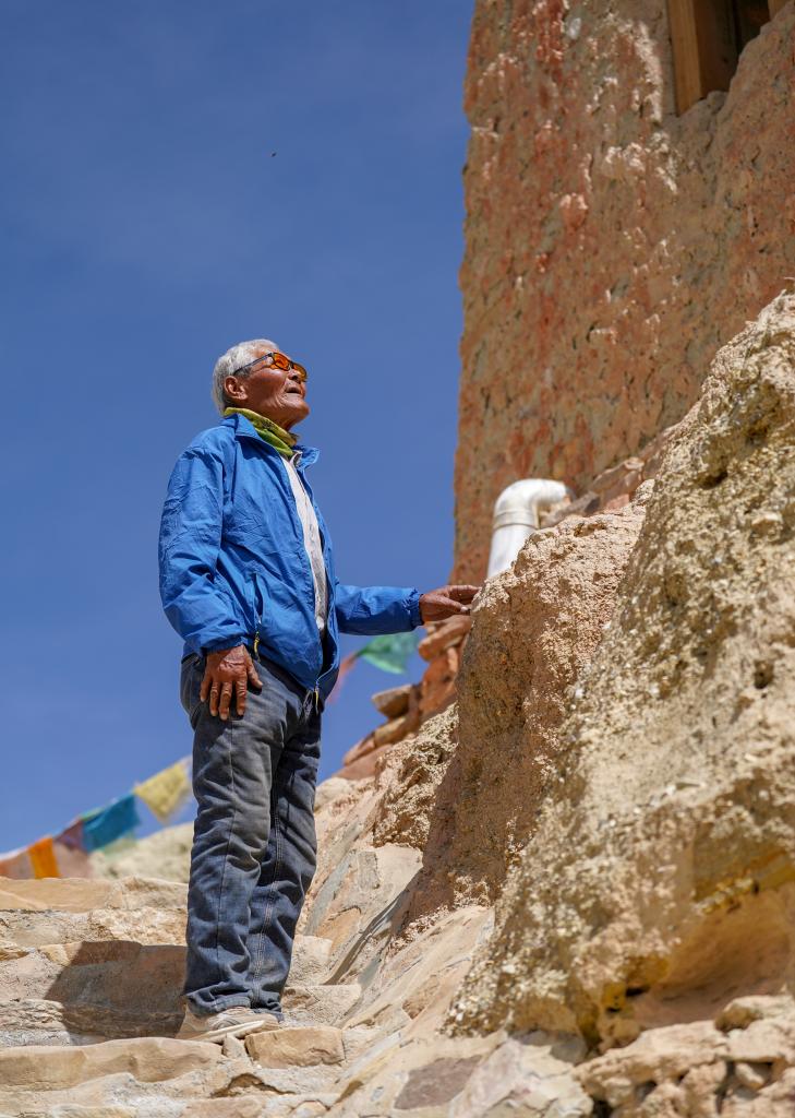 在對(duì)皮央和東嘎石窟遺址的采訪中,我們看到了一位十年如一日守護(hù)國(guó)家文物的老人——仁增旺扎。