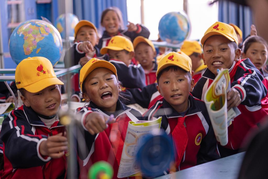 6月5日,扎西宗鄉(xiāng)完全小學(xué)的學(xué)生在上科學(xué)課。