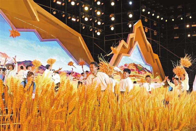聲,是情的流露;舞,是意的表達。開幕式文藝表演由序《珠峰頌歌》、上篇《戀上青稞》、下篇《極境暢想》和尾聲《吉祥日喀則》組成。序《珠峰頌歌》中,150名演員深情合唱歌曲《珠穆朗瑪》,表演節(jié)奏歡快的男女踢踏舞等,展現(xiàn)日喀則高質(zhì)量發(fā)展的加速度和拼搏奮進的精氣神。上篇《戀上青稞》,展示日喀則各族群眾勤勞、樂觀、向上的精神風(fēng)貌和獨具魅力的地域文化。下篇《極境暢想》,以青稞美酒作為表現(xiàn)載體,以游客的視角介紹日喀則文旅資源,并通過藏戲和昆曲等多種文化藝術(shù)碰撞,展示日喀則在打造面向南亞大通道的發(fā)展機遇中,廣泛開展對外開放交流合作。尾聲《吉祥日喀則》,展示日喀則海納百川、開放包容的胸襟和熱情。