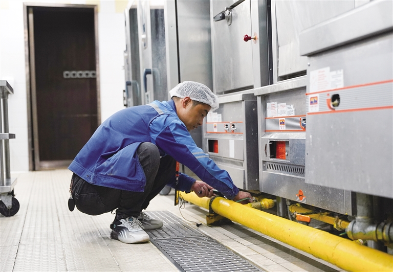 在香格里拉酒店,拉薩暖心公司工作人員對(duì)酒店的鍋爐房、廚房等地開(kāi)展了燃?xì)獍踩[患排查。拉薩暖心公司客戶(hù)服務(wù)部抄表中心主任張雁龍手拿檢測(cè)儀器,對(duì)鍋爐房、廚房?jī)?nèi)的燃?xì)夤艿浪薪涌?、燃?xì)庠罹摺④浌?、燃?xì)鈭?bào)警器、安全閥等全部進(jìn)行了檢查,并對(duì)每一項(xiàng)檢查結(jié)果進(jìn)行了登記。
