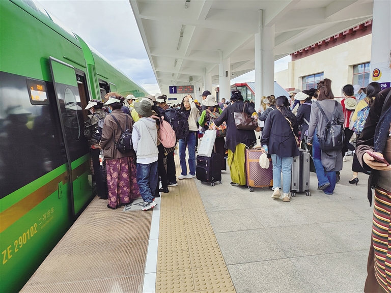 拉薩火車站出行旅客。