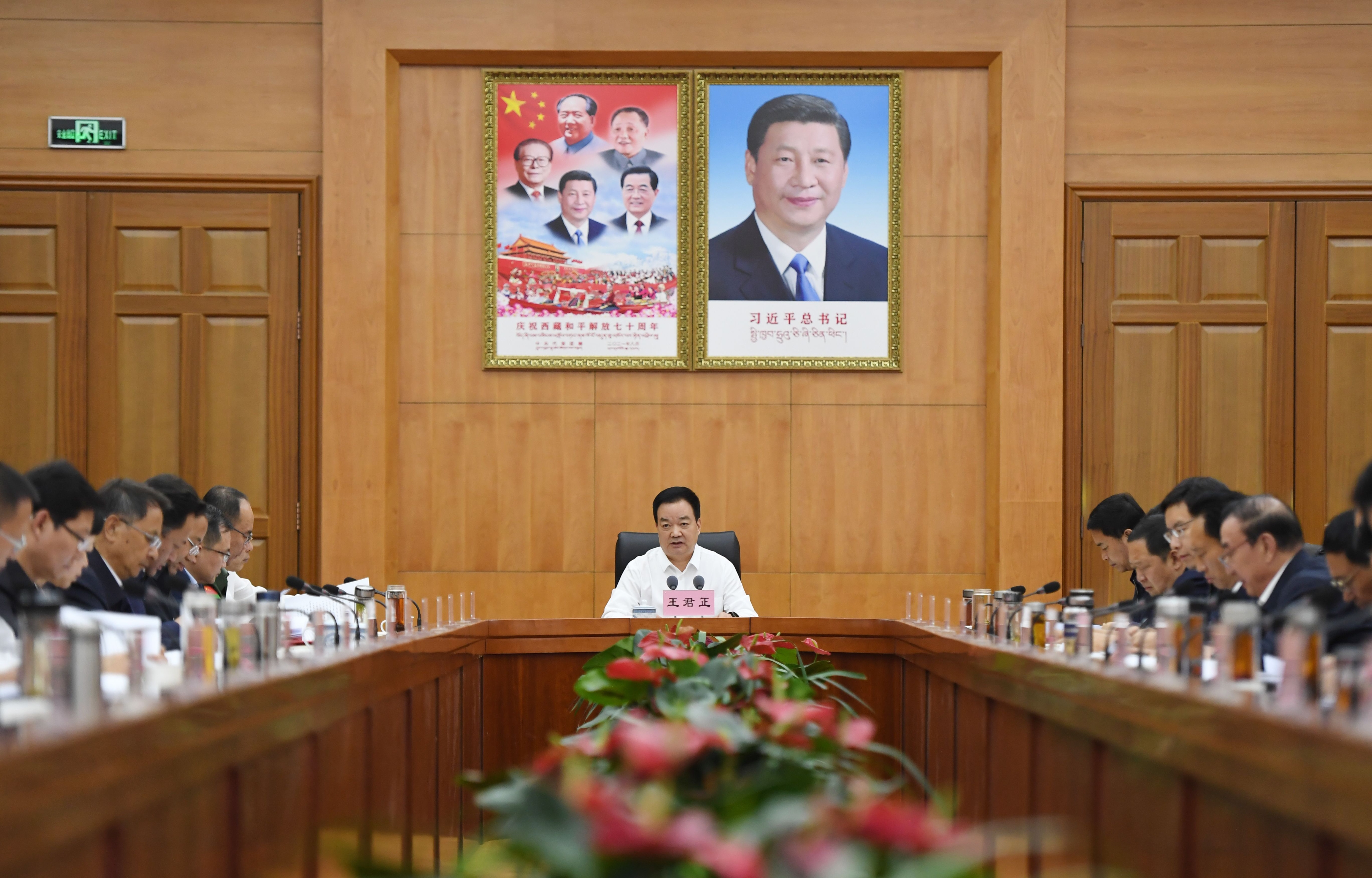 7月11日下午,西藏自治區(qū)黨委書記王君正主持召開自治區(qū)黨委常委班子主題教育調(diào)研成果交流研討會。這是會議現(xiàn)場。記者 李洲 攝