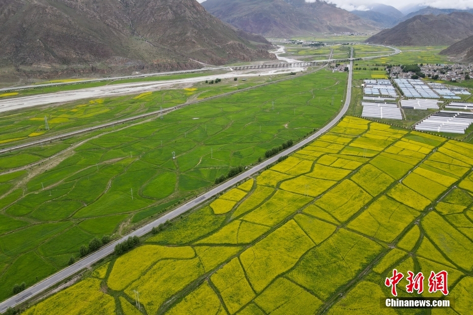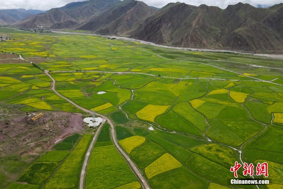 7月24日,航拍西藏堆龍曲沿岸的油菜花田與青稞地。堆龍曲是拉薩河支流,源頭位于念青唐古拉山脈西南,流經(jīng)羊八井、德慶鎮(zhèn),至堆龍德慶區(qū)注入拉薩河干流。近日,西藏堆龍曲兩岸油菜花盛放,呈現(xiàn)出一幅“高原不與四時同、七月才開二月花”的美麗景象。駕車經(jīng)過或漫步其間,高原油菜花散發(fā)出陣陣花香,像是“春天的味道”。