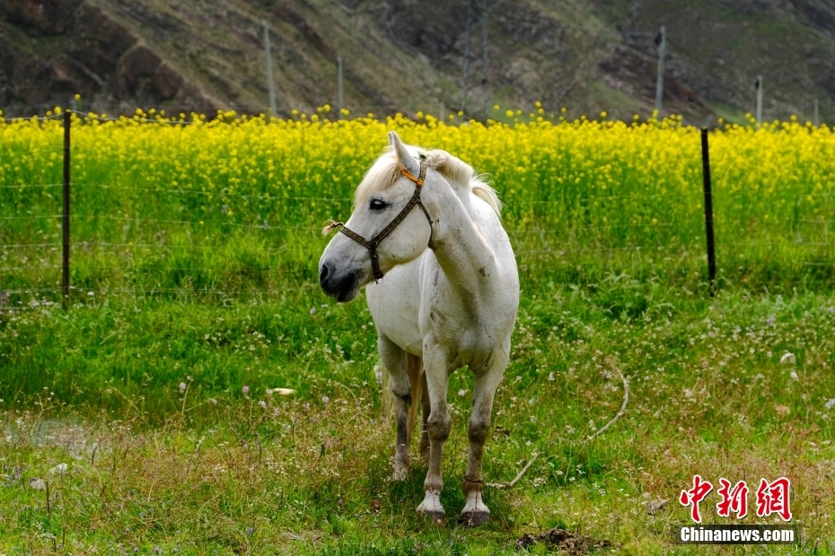 7月24日,高原油菜花田和白馬。