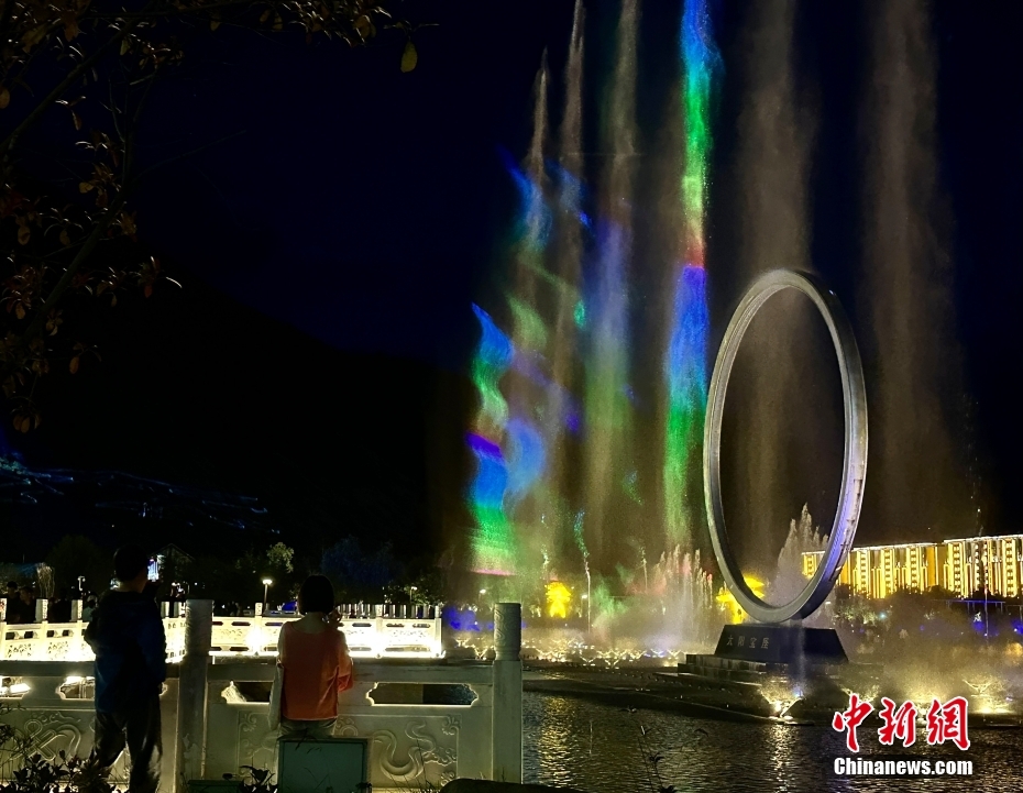 音樂水秀噴泉位于工布公園人工生態(tài)湖中。錢姣姣 攝