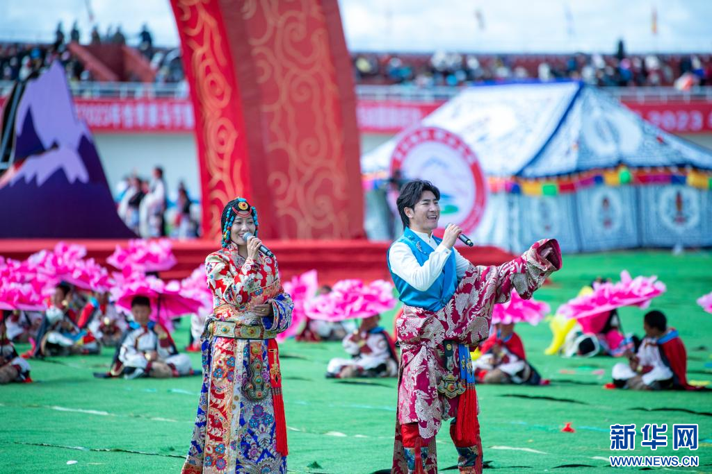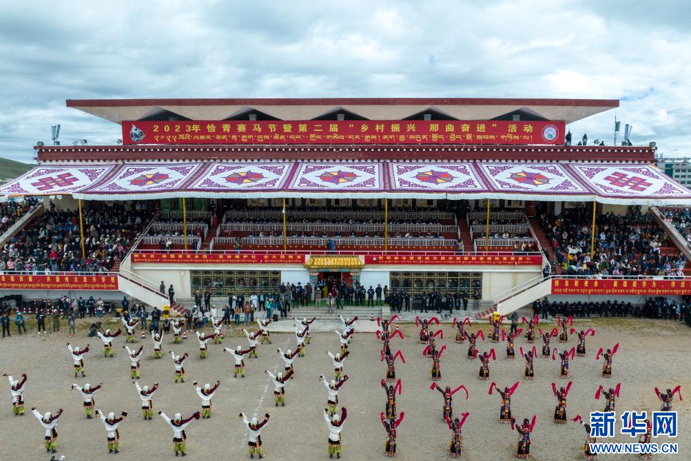 ??近日,2023年恰青賽馬節(jié)開幕式在西藏自治區(qū)那曲市格薩爾王賽馬場舉行,來自那曲市各縣(區(qū))的演員和歌手共同載歌載舞。