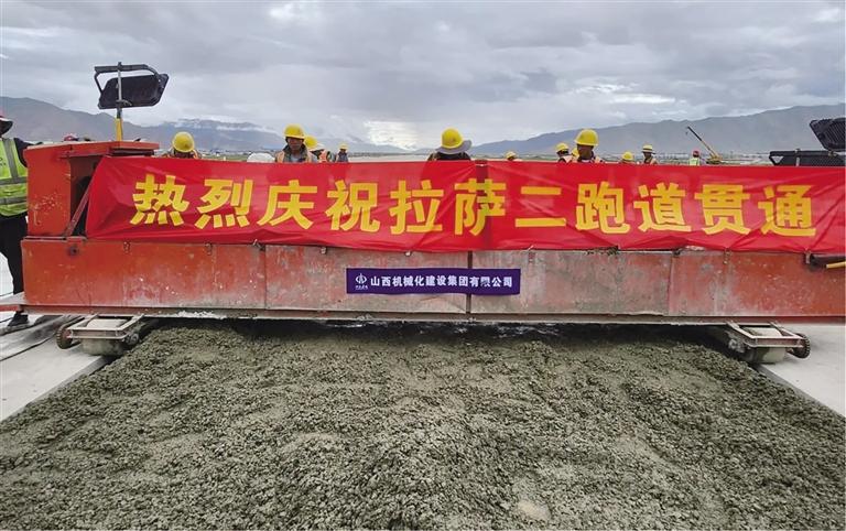 近日,隨著施工現(xiàn)場(chǎng)攤鋪機(jī)轟鳴聲的戛然而止,拉薩貢嘎機(jī)場(chǎng)新建第二跑道最后一倉(cāng)混凝土完成澆筑,標(biāo)志著拉薩貢嘎機(jī)場(chǎng)新建第二跑道順利完成全線(xiàn)貫通。