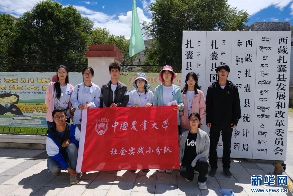 中國農業(yè)大學峰云社人文科考隊隊員在西藏山南市扎囊縣合影留念。新華社發(fā)