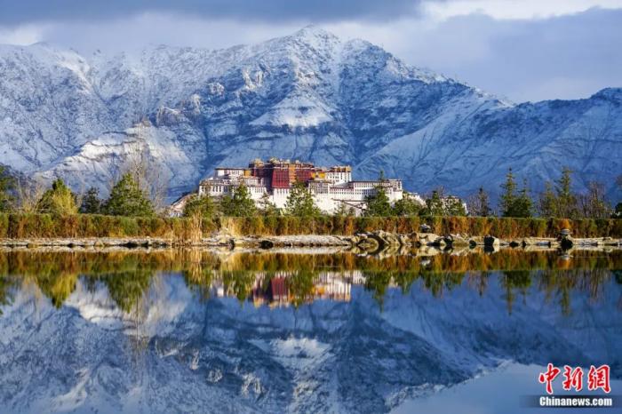 布達(dá)拉宮與雪山倒映在拉薩南山湖面。江飛波 攝