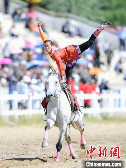 8月17日,西藏傳統(tǒng)體育項目——馬術(shù)表演亮相雪頓節(jié),在拉薩賽馬場開幕。民族傳統(tǒng)馬術(shù)表演內(nèi)容包括馬背上的舞蹈、馬上斬劈、馬上射箭、馬上敬酒、馬上拾哈達、多人多馬(疊羅漢)等10余個大項。當(dāng)天的活動,為民眾及游客帶來了一場視覺盛宴。