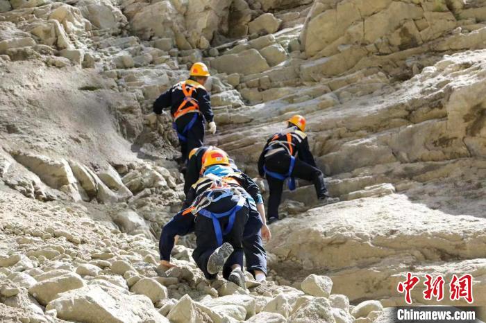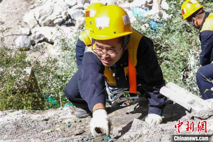 近日,在西藏山南雅魯藏布江畔的拉林鐵路安拉隧道口山崖上,中國鐵路青藏集團(tuán)有限公司拉薩基礎(chǔ)設(shè)施段加查橋隧工區(qū)的職工們對山體開展巡視,他們一邊攀爬,一邊小心用手錘敲擊巖石,對有空虛、容易滑落的石塊用自噴漆進(jìn)行標(biāo)記。遠(yuǎn)遠(yuǎn)看去,一群人猶如壁虎穿梭于懸崖峭壁之上。