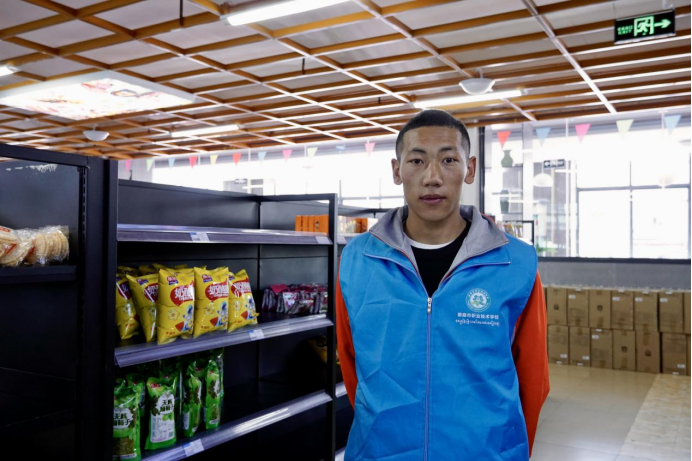 為學生全面發(fā)展夯實基礎,學校特別設置了多樣化的功能室。每周,來自藏醫(yī)專業(yè)的高三學生索日吉和卡松旺堆,都會在課余時間在校園電視臺擔任播音主持人?!霸谶@里類似的機會有很多,能見到的、聽到的、觸摸到的變多了,眼界也變開闊了?!笨ㄋ赏颜f。同為高三學生的朗崗平措,每天都會去模擬創(chuàng)業(yè)實訓基地的學生生活超市值班。作為店長,他現(xiàn)在已經(jīng)熟練掌握了超市運營中各環(huán)節(jié)的操作流程,并能夠完全獨立地和各企業(yè)對接進貨。據(jù)了解,自去年12月正式開業(yè)起,學生生活超市已盈利42萬元,未來這些收入將作為學生創(chuàng)業(yè)啟動基金。