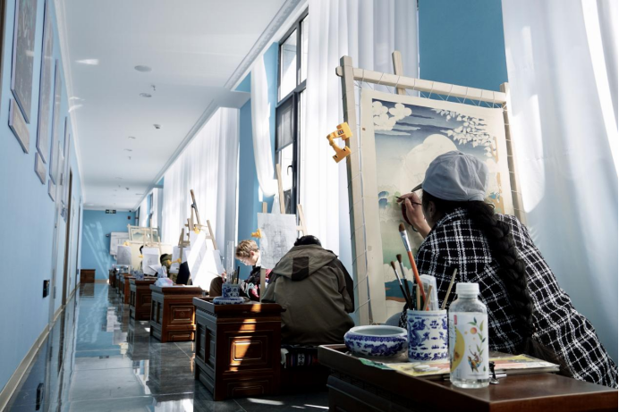 圖為綜合實訓樓內(nèi)唐卡學習場所