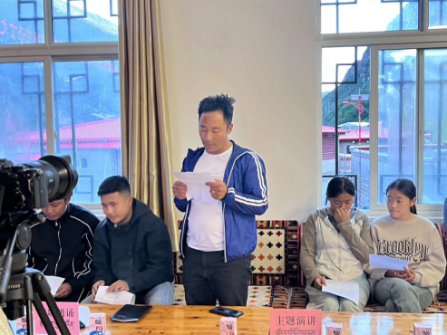 “獲得今天詩歌朗誦、演講比賽、情景模擬一等獎(jiǎng)的分別是益西繞吉、拉措、鄧小華,獲得二等獎(jiǎng)的分別是益西丁真、益西澤西、江擁羅布……”掌聲、笑聲、歡呼聲回蕩在江達(dá)鎮(zhèn)嘎通村村委會(huì)會(huì)議室里。
