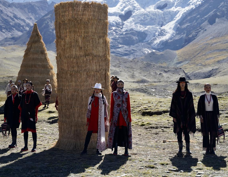 以雪域高原的藍天白云為幕,以廣袤無垠的高山草甸為毯,以金光燦燦的青稞裝飾為景……9月17日上午10時許, 來自上海金山的時裝品牌:沙涓“雪域·回響”喜馬拉雅大秀在西藏日喀則江孜縣乃欽康桑雪山下舉行,向現(xiàn)場觀眾呈現(xiàn)了一場西藏氆氌手工藝大秀,并通過視頻直播全球首發(fā),展現(xiàn)非遺復(fù)興。