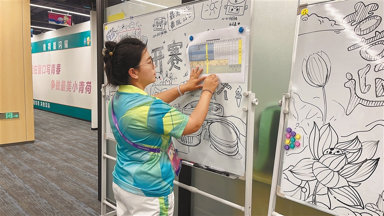 配圖:“小青荷”索朗德吉在張貼賽區(qū)賽程表。記者 萬(wàn)靖 攝