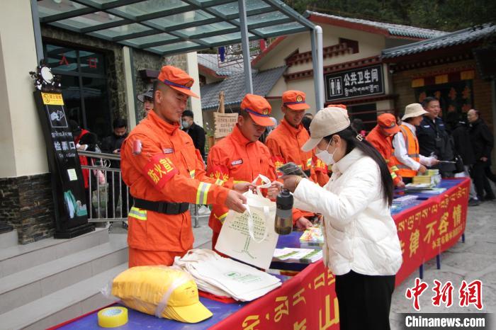 圖為消防員正在景區(qū)入口開展防火宣傳。西繞拉翁 攝