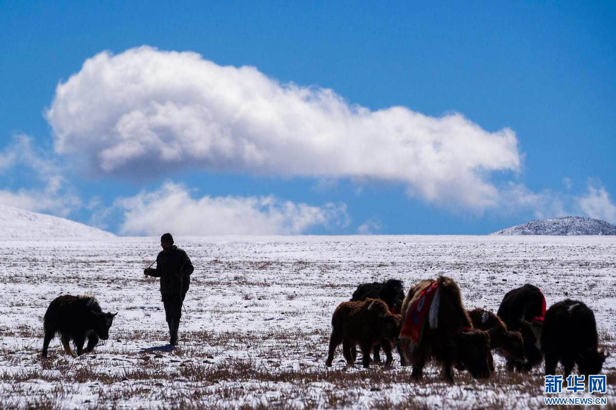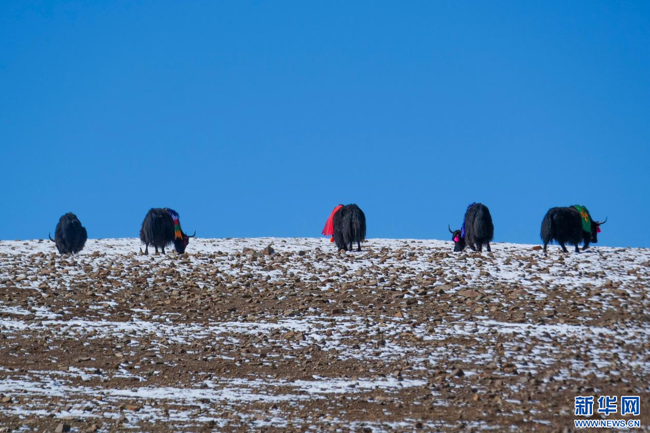 10月13日,在山南市措美縣境內(nèi)雪山腳下拍攝的牦牛。新華網(wǎng) 柑丹鴦琦 攝