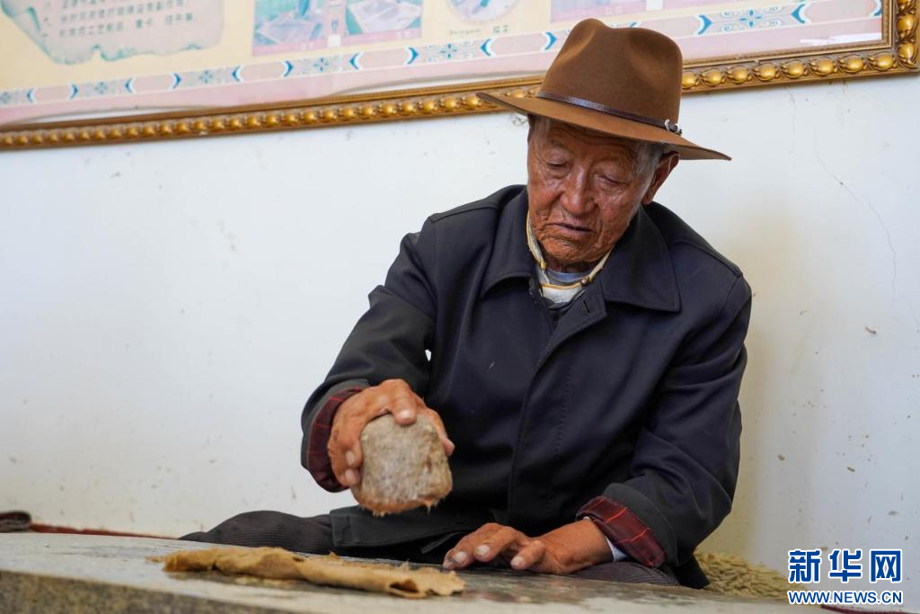 作為國家級非物質文化遺產項目藏族造紙技藝代表性傳承人,次仁多杰14歲起就跟著父親做藏紙,如今73歲的他將這項技藝傳承給了孫女普珍?!安丶埣仁鞘炙嚕彩俏幕?,不僅不能失傳,還應該精益求精,做得更好?!贝稳识嘟苷f。