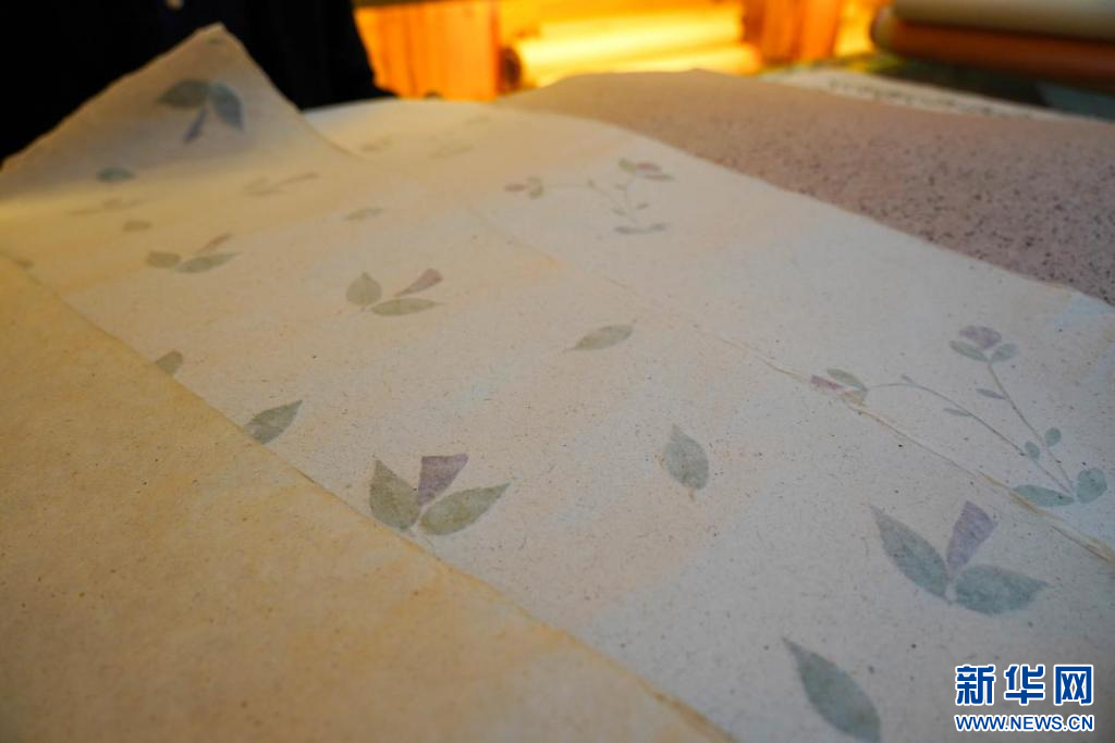 圖為次仁多杰研發(fā)的花瓣夾層藏紙(10月20日攝)。新華網發(fā) 司秦菱 攝