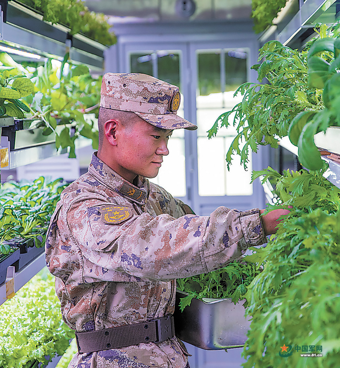 采用無(wú)土栽培技術(shù)的集裝箱“植物工廠”,讓邊防官兵吃上綠色蔬菜。