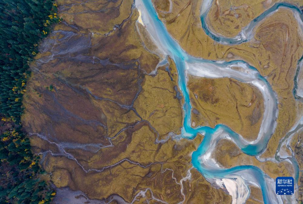 這是在林芝工布江達縣拍攝的景觀(無人機照片,10月28日攝)。新華社記者 姜帆 攝