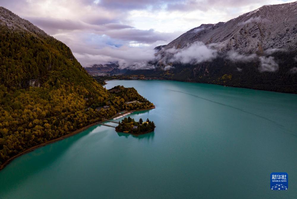 這是在林芝工布江達縣拍攝的巴松錯(無人機照片,10月28日攝)。新華社記者 姜帆 攝