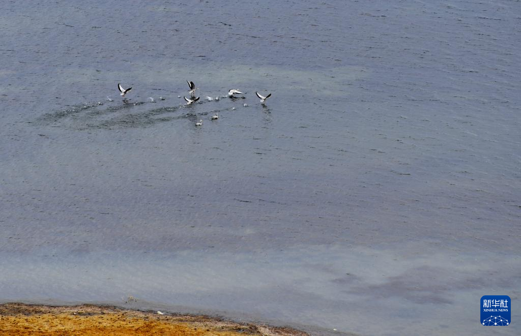 瑪旁雍錯(cuò)湖面上的斑頭雁(10月29日攝)。新華社記者 張汝鋒 攝