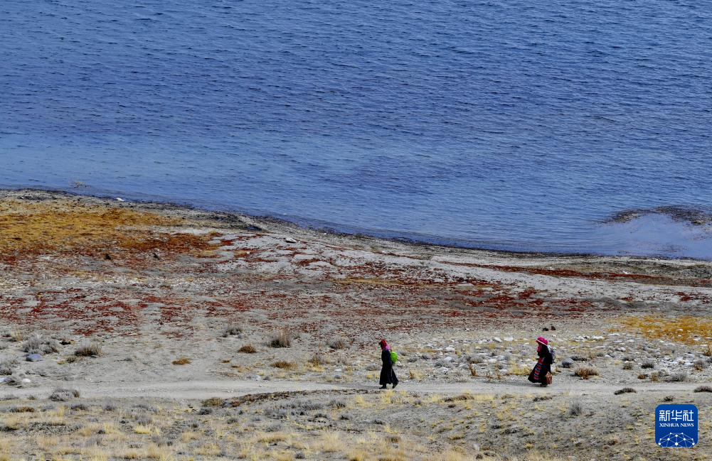 瑪旁雍錯(cuò)湖畔的轉(zhuǎn)湖人(10月29日攝)。新華社記者 張汝鋒 攝