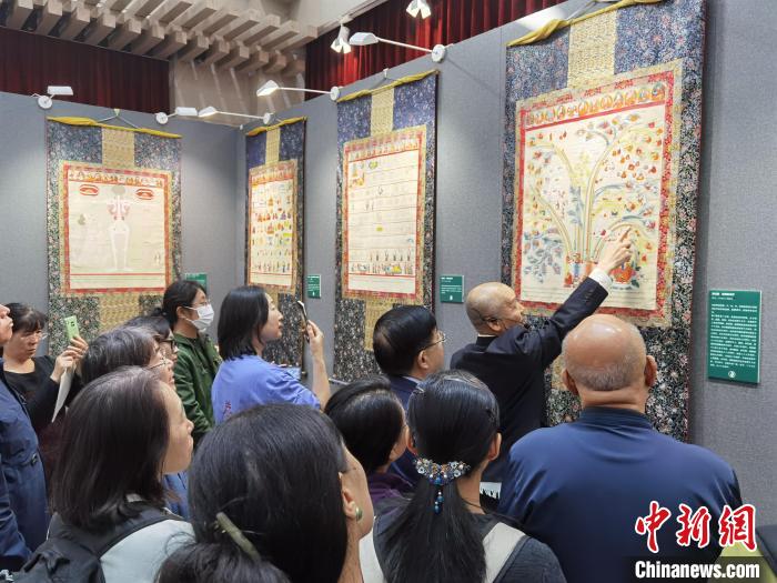 中國(guó)藏學(xué)研究中心北京藏醫(yī)院院長(zhǎng)仲格嘉在開幕式上致辭表示,起源和根植于中華民族的藏醫(yī)藥,是中國(guó)中醫(yī)藥學(xué)寶庫(kù)中的一顆璀璨明珠,迄今已有3800多年發(fā)展歷史。在藏醫(yī)學(xué)史上,形成了別出心裁的藏醫(yī)唐卡,以浩瀚畫卷,形象生動(dòng)、系統(tǒng)描繪了藏醫(yī)藥學(xué)的體系框架、基礎(chǔ)理論、臨床實(shí)踐技法,以及藏醫(yī)史、醫(yī)德醫(yī)風(fēng)、養(yǎng)生保健等內(nèi)容。除實(shí)用價(jià)值外,藏醫(yī)唐卡還有很高的民族學(xué)、歷史學(xué)、宗教學(xué)及美學(xué)價(jià)值,堪稱“學(xué)習(xí)藏醫(yī)藥學(xué)的百科全書”。