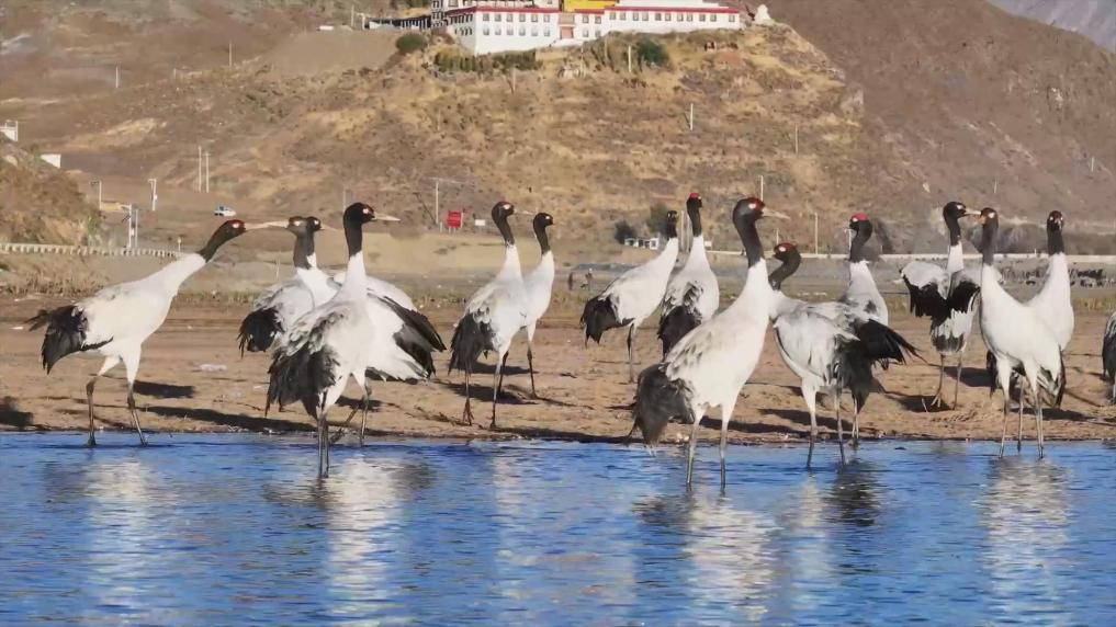 黑頸鶴是國家一級保護動物,主要棲息在海拔2500米至5000米的高原、草甸、沼澤地帶。拉薩北部的林周縣平均海拔約4200米,是黑頸鶴的主要越冬地之一。
