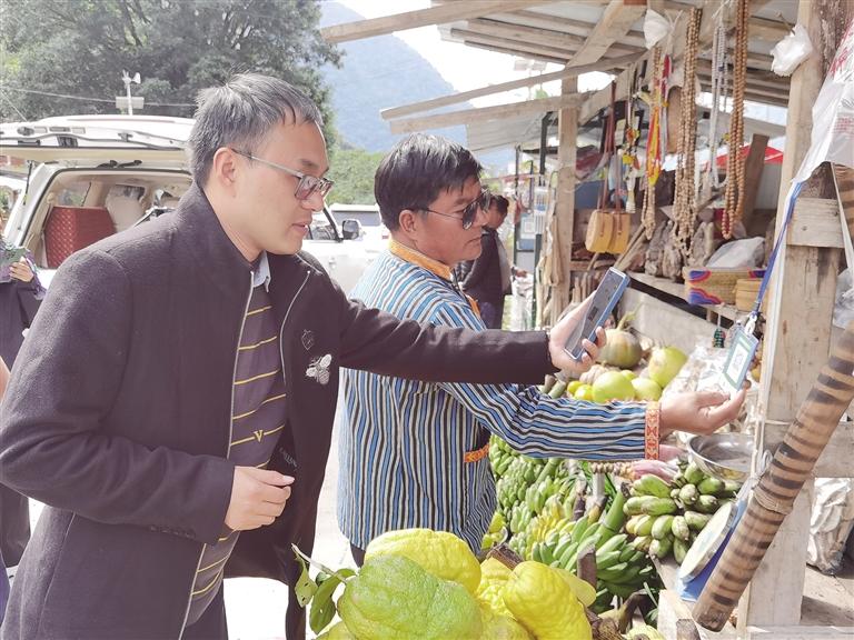 游客正在墨脫縣購買當(dāng)?shù)氐乃?圖由自治區(qū)交通運(yùn)輸廳提供
