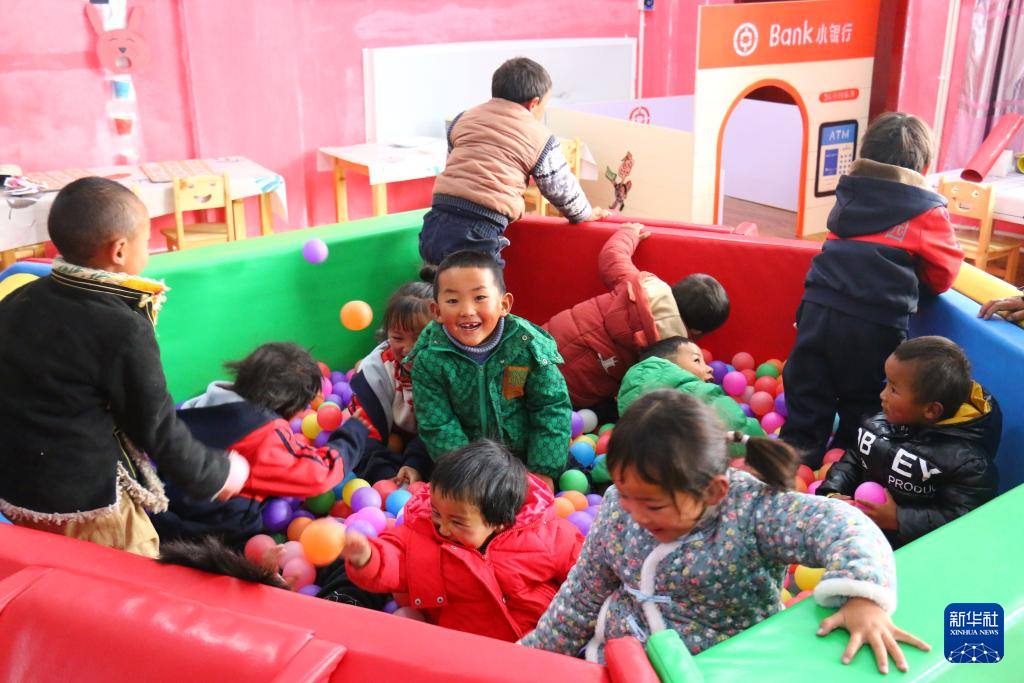 噶爾縣扎西崗鄉(xiāng)幼兒園的孩子們?cè)谧鲇螒颍?1月6日攝)。新華社記者 陳尚才 攝
