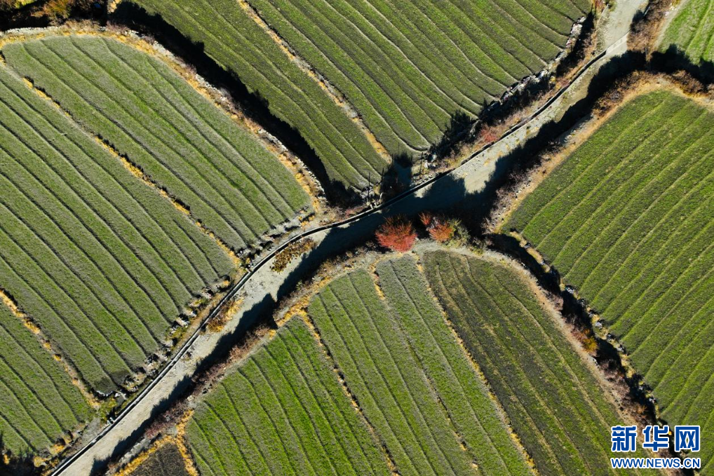 11月16日,西藏隆子縣加玉鄉(xiāng)境內(nèi)拍攝的農(nóng)田(無人機(jī)照片)。新華網(wǎng) 旦增努布 攝