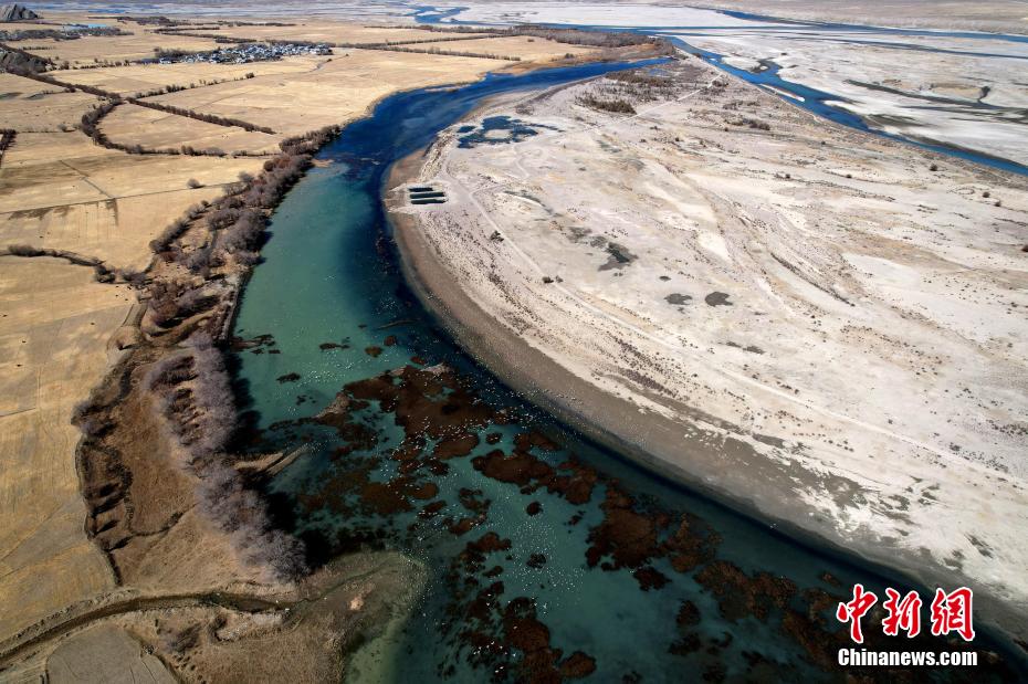 圖為西藏日喀則市桑珠孜區(qū)邊雄鄉(xiāng)是黑頸鶴的主要越冬地之一。(無人機(jī)照片)李林 攝