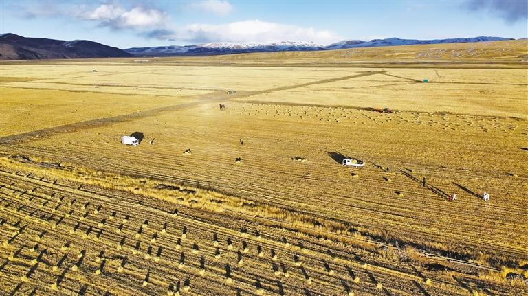 圖為金色的羌塘草原迎來(lái)牧草豐收。 記者 趙書彬 攝