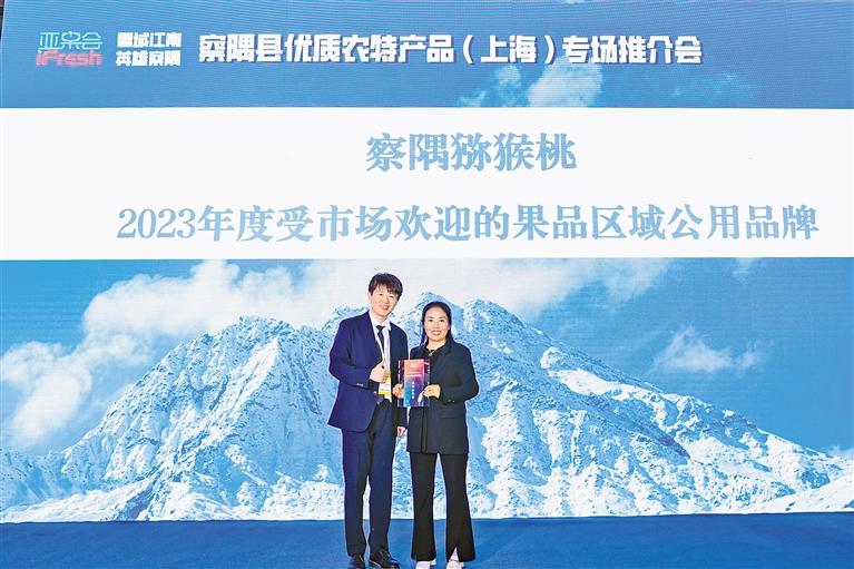 察隅獼猴桃獲得第十六屆iFresh亞洲果蔬產(chǎn)業(yè)博覽會“2023年度受市場歡迎的果品區(qū)域公用品牌”的榮譽(yù)。 圖片由本報(bào)記者 謝筱純 王珊 攝