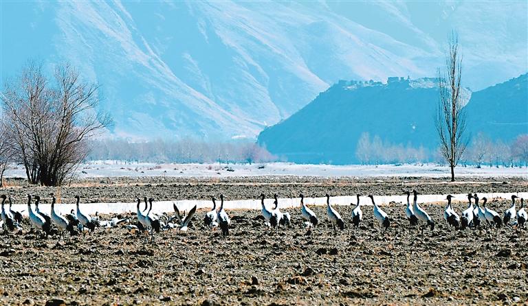 黑頸鶴的成群遷徙停歇或繁殖,正是生態(tài)環(huán)境持續(xù)向好的“最美注腳”。近年來,西藏濕地保護(hù)與恢復(fù)措施逐步實(shí)施后,濕地面積逐漸擴(kuò)大,動物棲息地得到了有效保護(hù),野生動植物數(shù)量不斷增加,特別是水禽等鳥類數(shù)量明顯增加。