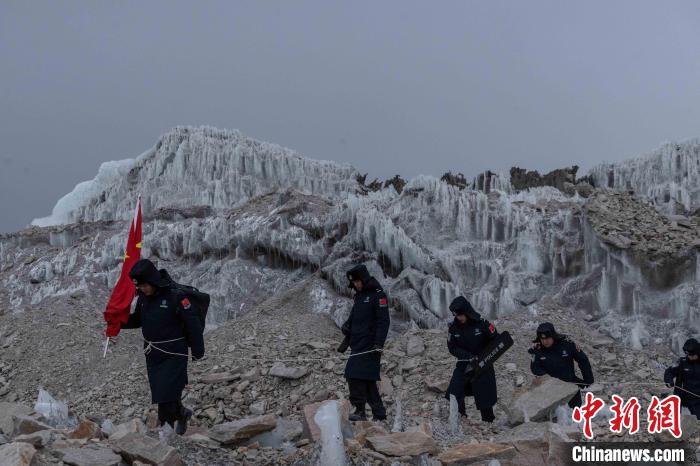 圖為普瑪江塘邊境派出所民警在海拔5600米的崗布冰川噴涂中國。郭遠(yuǎn)敬 攝