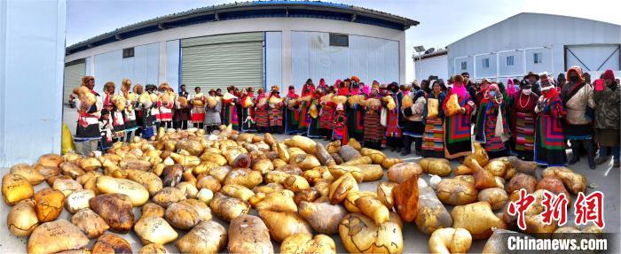 圖為合作社為社員發(fā)放畜產品。索朗仁青 攝