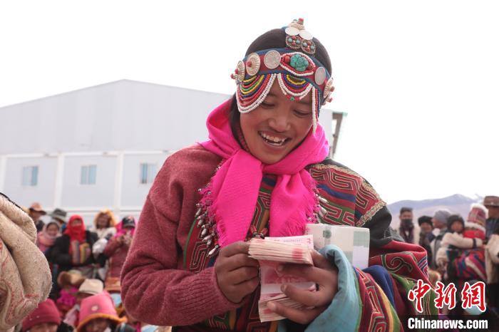 圖為合作社社員領到現(xiàn)金分紅。索朗仁青 攝