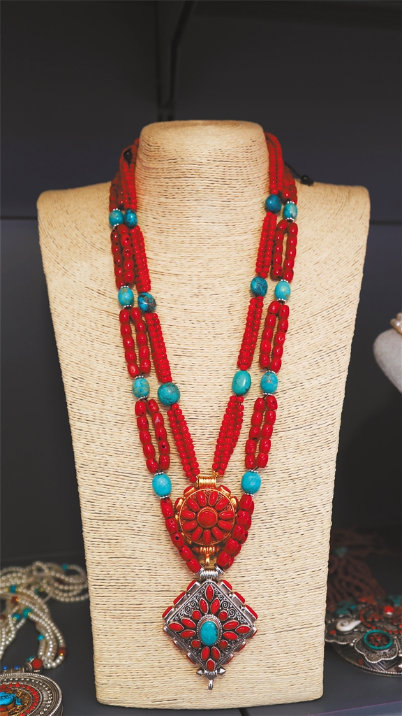 圖為物交會現(xiàn)場展出的藏式項(xiàng)鏈。