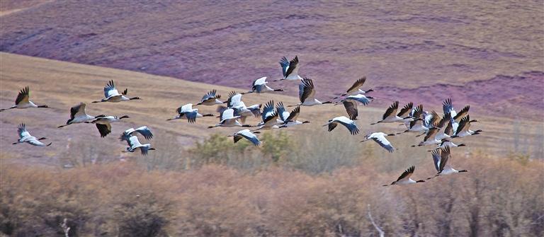 “生態(tài)好不好,看鳥就知道。”近日,在西藏越冬的“老朋友”黑頸鶴越來越多。每年3月中旬,黑頸鶴會從越冬地——雅江中游河谷及其支流拉薩河、年楚河流域的“一江兩河”地區(qū),飛去羌塘北部草原等地繁育后代;10月中下旬又從繁殖地——那曲的班戈縣、申扎縣、嘉黎縣,阿里的日土縣、普蘭縣,日喀則的昂仁縣及拉薩的當(dāng)雄縣返回到越冬地。黑頸鶴的成群遷徙、停歇或繁殖,正是生態(tài)環(huán)境持續(xù)向好的“最美注腳”。
